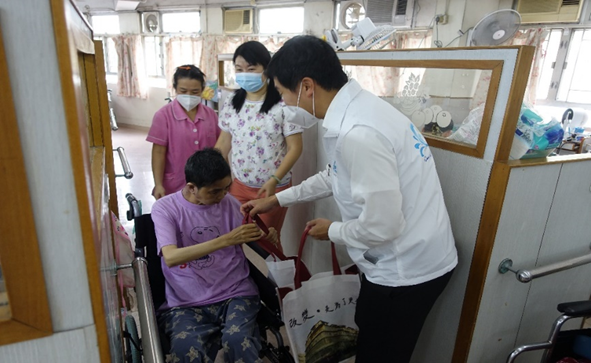 民生慈善會到訪葵興妍景安老院作探訪活動,並特意挑選了適合長者的時令水果、乾糧及日常用品作為福袋禮物贈予妍景安老院的院友。